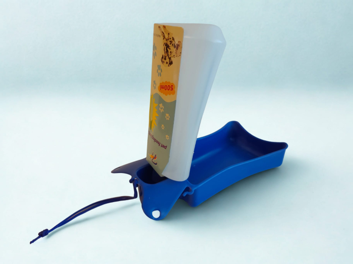 Asigură hidratarea rapidă și ușoară în timpul deplasărilor cu acest adăpător portabil pentru câini, practic și eficient. Designul tip sticlă cu tavă permite distribuirea apei direct în recipientul de băut, fără risipă.