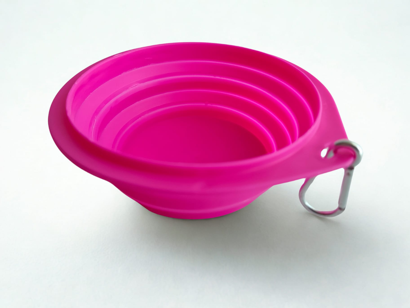 Castronul se extinde rapid atunci când este utilizat și se pliază după folosire. Este prevăzut cu sistem de prindere tip carabină, permițând atașarea facilă la lesă, rucsac sau geantă.
