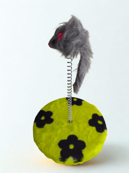 Șoricelul montat pe arc se mișcă la atingere, captând atenția pisicii și încurajând interacțiunea. Suprafața din sisal este potrivită pentru zgâriat, contribuind la întreținerea ghearelor și protejarea mobilierului.